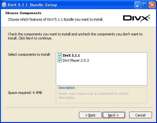 DivX Codec DivX Playerを別々にアンインストールも可能です。