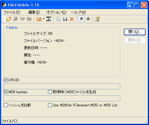 そして開くボタンを押し、MD5値を取りたいファイルを開きます。