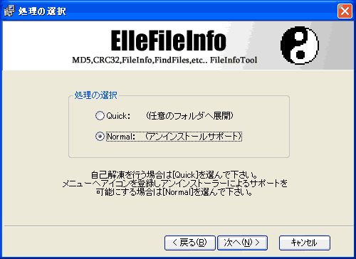 スタートメニューへの登録名を決定します。デフォルトの名前はElleFileInfoです。次へボタンを押して次へ進みます。