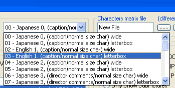 データーを読み込む場合は、SubRipウインドウのCharacters Matrix/Open Characters Matrix File を開きます。