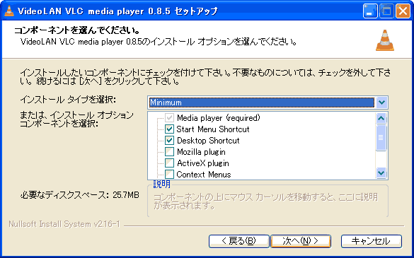 プログラムのインストール先を決定します。通常[デフォルト]のインストール先はC:\Program Files\VideoLAN\VLCです。(変更したい場合は参照ボタンを押してインストール先を選択します。)インストールボタンを押して、次へ進みます。