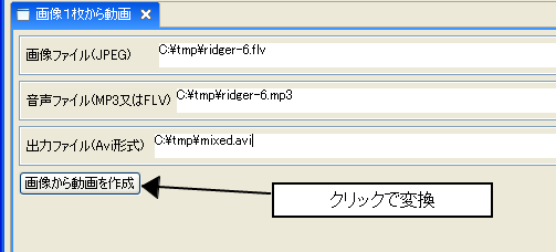 そして画像ファイルの欄の参照ボタンをクリックしてAviファイル選択します。